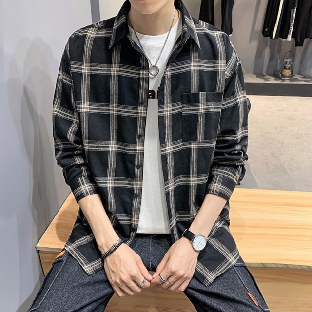 Baju Lengan Panjang Lelaki Baju Kemeja Lengan Panjang Lelaki Musim Luruh Trend Retro Kemeja Kotak Kotak Hitam Dan Putih Kemeja Kemeja Kasual Lelaki Kasual Slim Shopee Malaysia