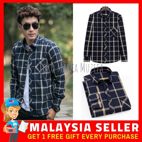 Baju Kemeja Lelaki Men Shirt Free Pos Trendy Long Sleeve Men Checkered Shirt Baju Kotak Lelaki Lengan Panjang Shopee Malaysia